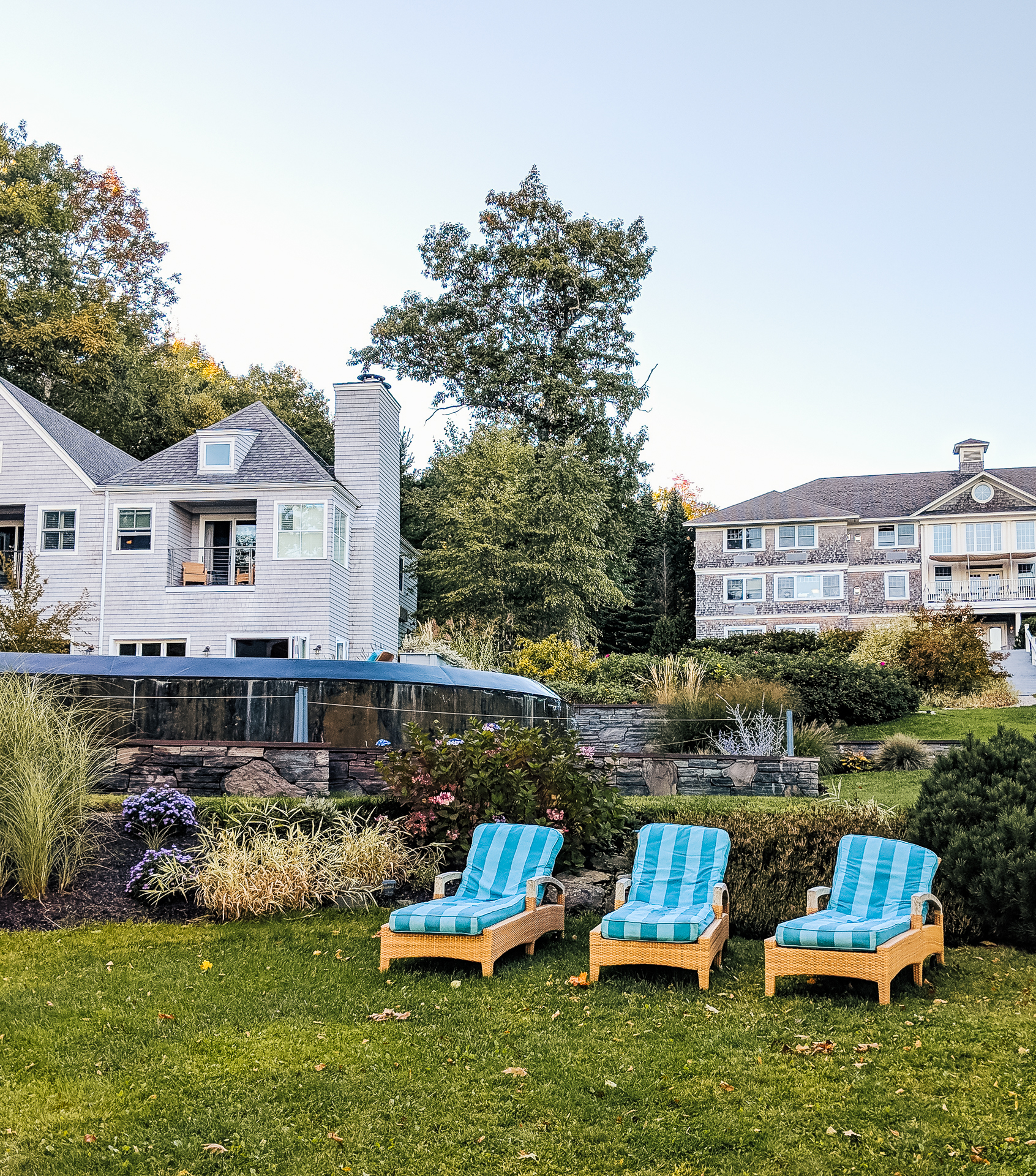 Ocean’s Edge has multiple buildings along the coastline that you can stay in, with spectacular ocean views enabling you to wake up with the sunrise. Rooms at the Inn are all large and offer a seating area, a gas fireplace, and a spacious balcony with views of Penobscot Bay. Located within the Inn is a heavenly Spa in to calm and seduce you into a relaxing vacation mode. The pool house features cool tones of blues mixed with rich wooden ceiling beams and a stone fireplace to sit by after a dip in the outdoor heated infinity edge pool. They also have a cedar sauna and a hot tub.