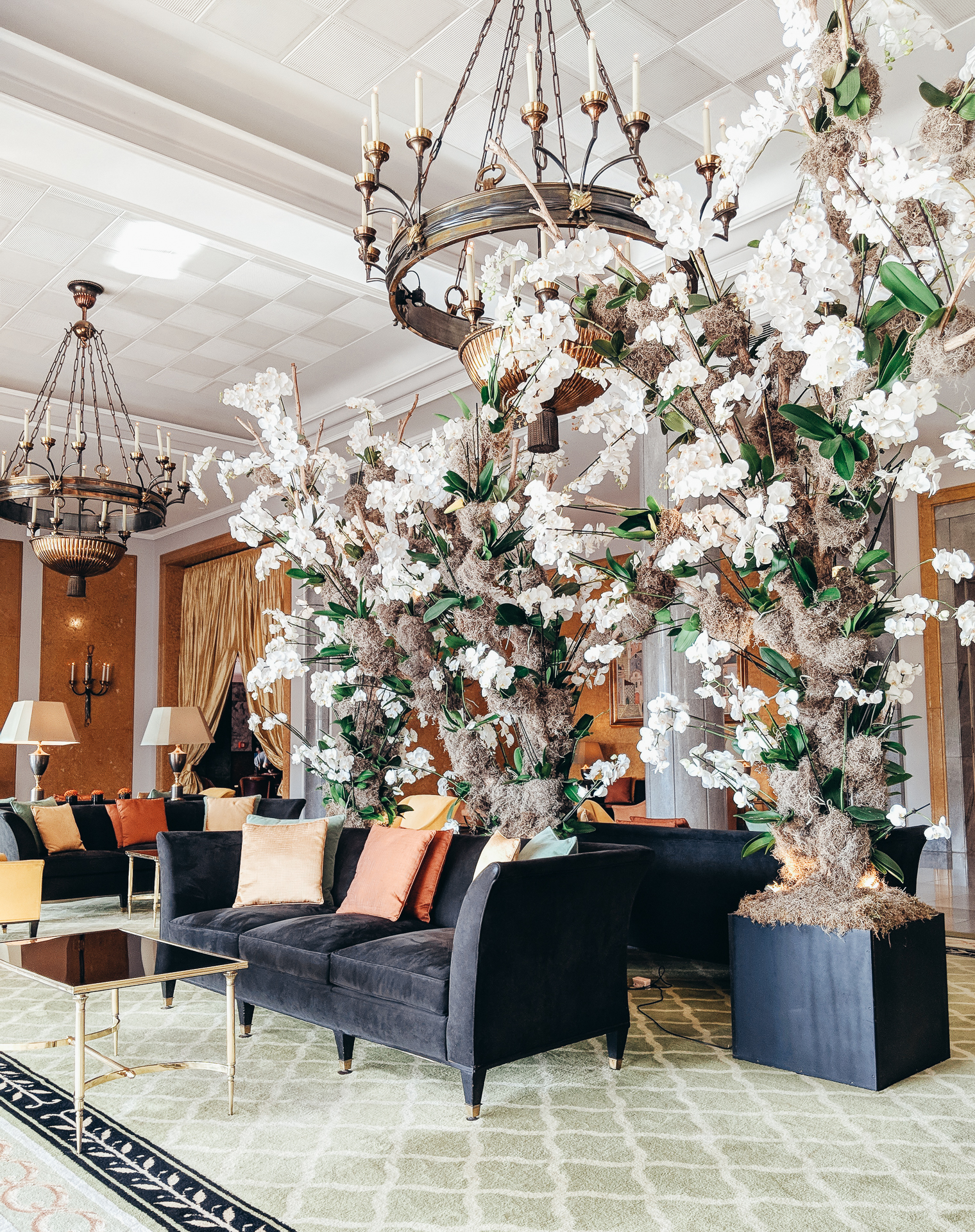 When you walk into the lobby the first thing you notice is the incredible hanging live orchid display. Striking bright pink orchids with their root systems still attached hang from a display, bringing an edge of creativity along with a tranquil earthy peaceful feeling. As you move further into the hotel you’ll notice decadents lounge pieces surrounded by oversized art. They have a fresh sushi bar with a sushi chef, along with a classic lounge with soft leather seating and classic cocktail tables. In another sitting area there is yet ANOTHER live orchid display branching out over some plush deep navy couches.