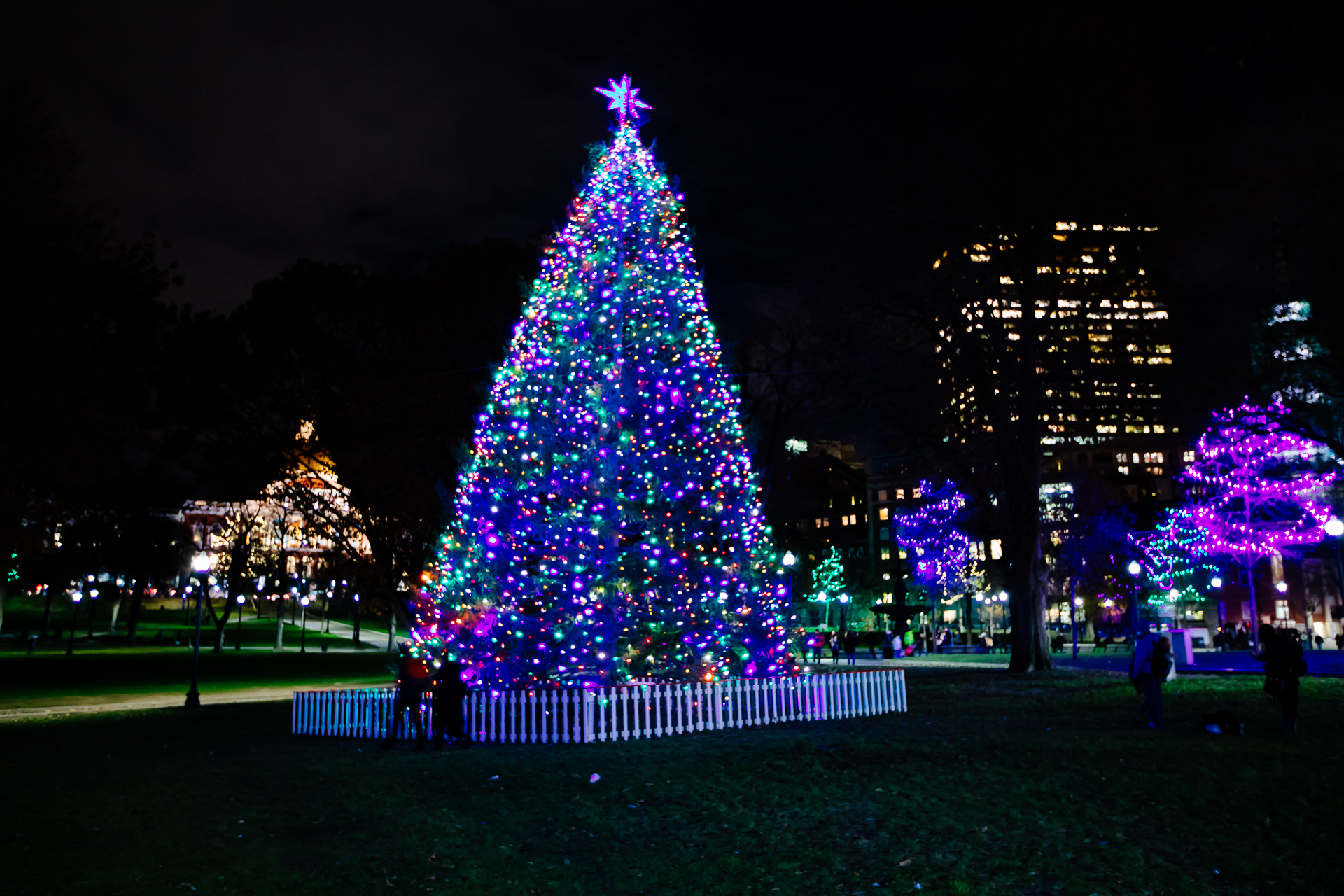 All of the trees in Boston are a sight to see, however the tree in the Boston Common is a special story. Every year we receive our tree from Halifax, Nova Scotia. in 1917 Halifax had an explosion that killed over 2,000 and injured over 8,000 more. Upon hearing the news Boston immediately sent a train full of doctors, nurses, and medical supplies to help Halifax. Now, even 100 years later, Nova Scotia gifts a hand picked tree as a token of gratitude.