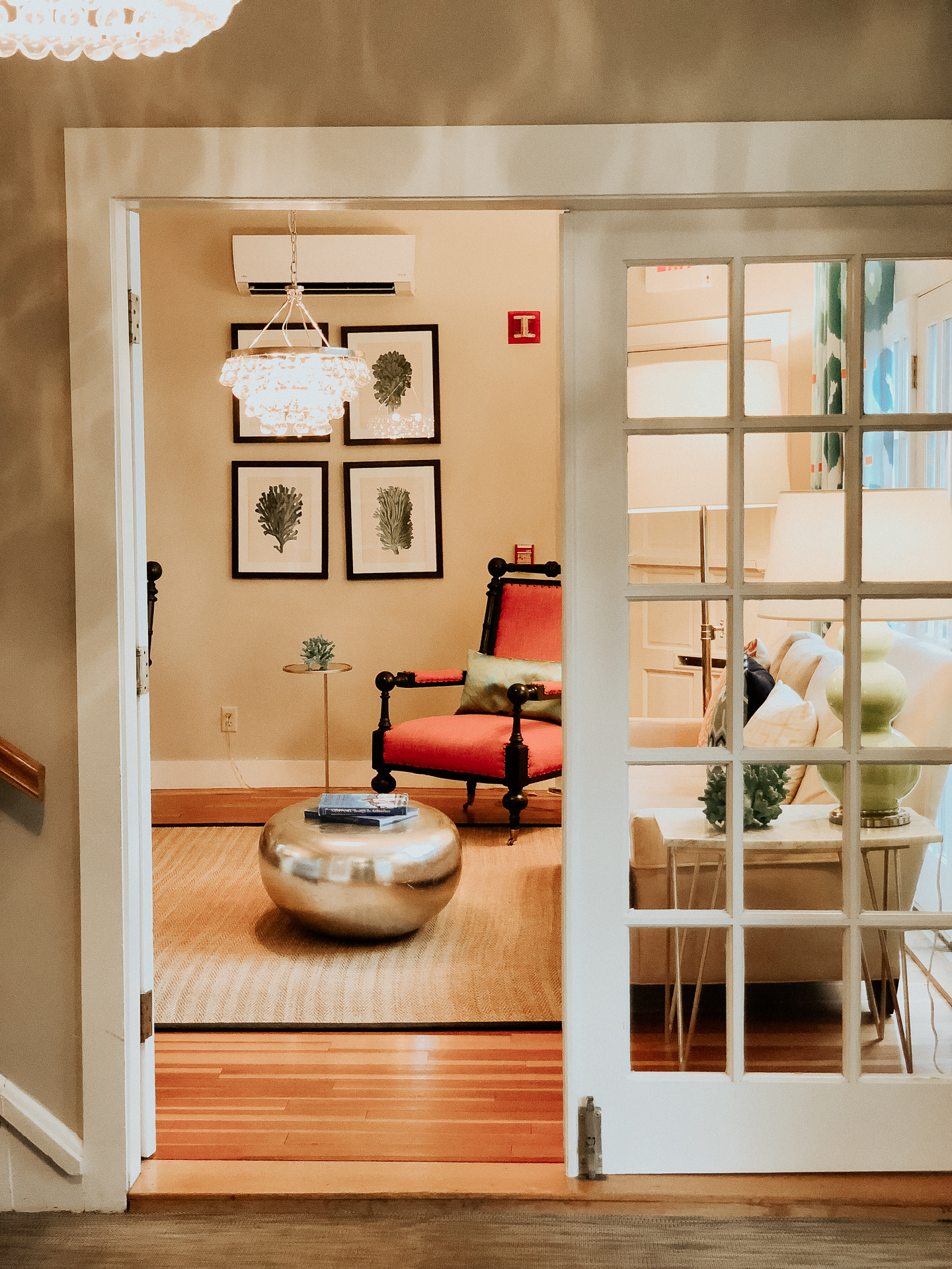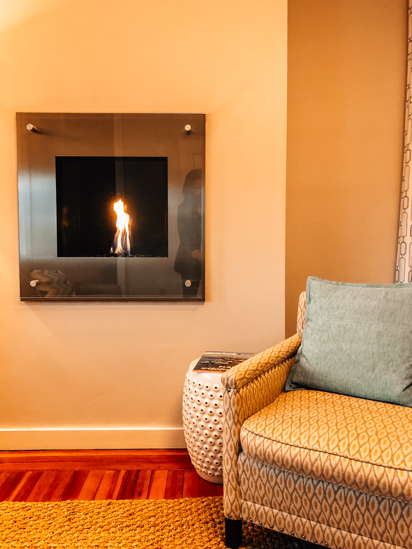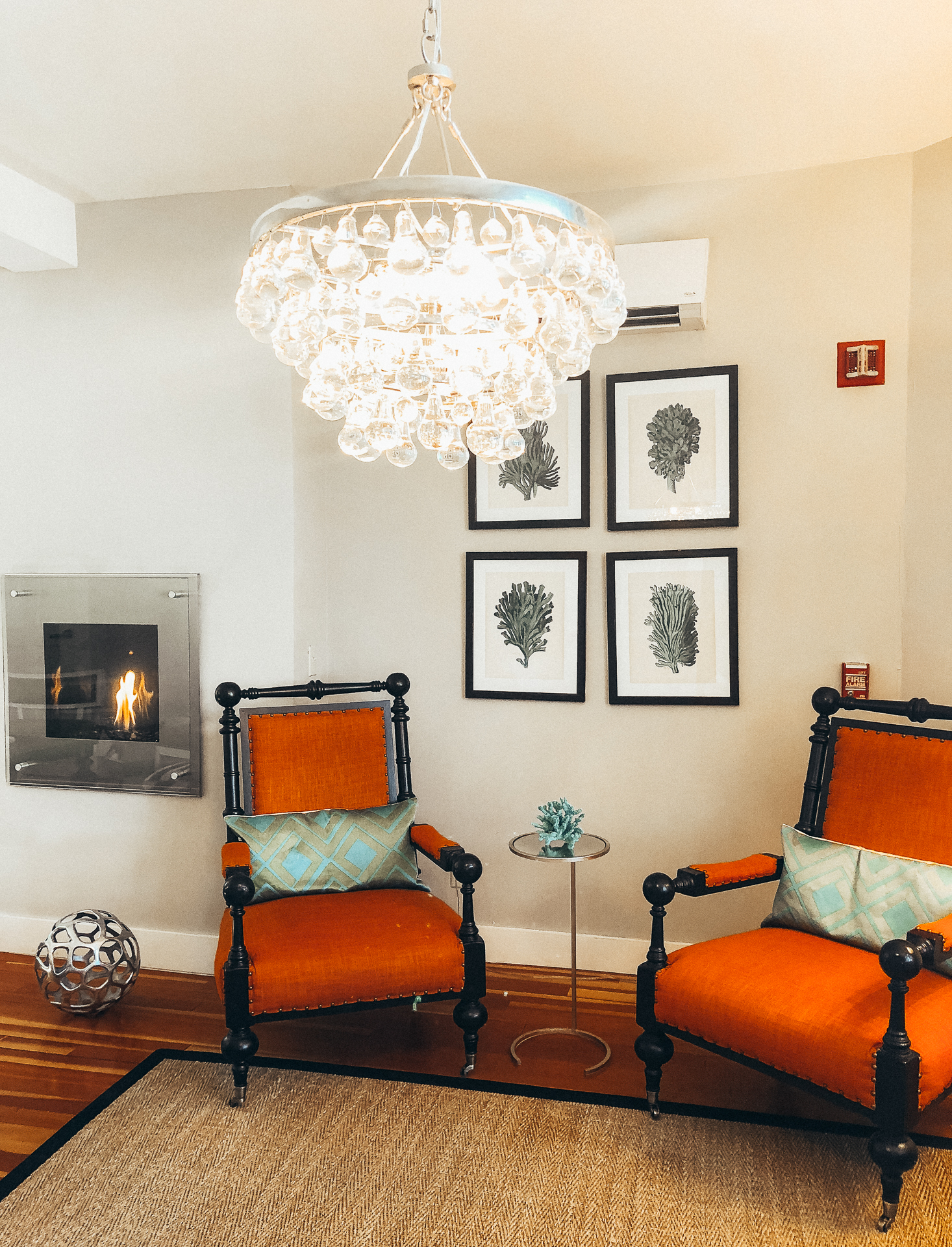 They also have a warm and beautiful sitting room featuring fun fabrics and textures and a fireplace to relax by. This room is full on interior inspiration and I was drawn into it again and again. The stunning rust orange chairs juxtaposed against the zebra ottomans is two of the many design elements I was crushing on all weekend!